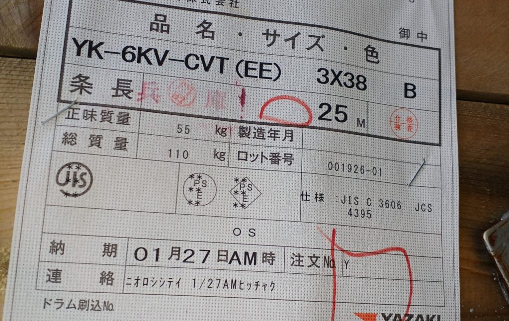到着したCVT38㎟3C(EE)ケーブル