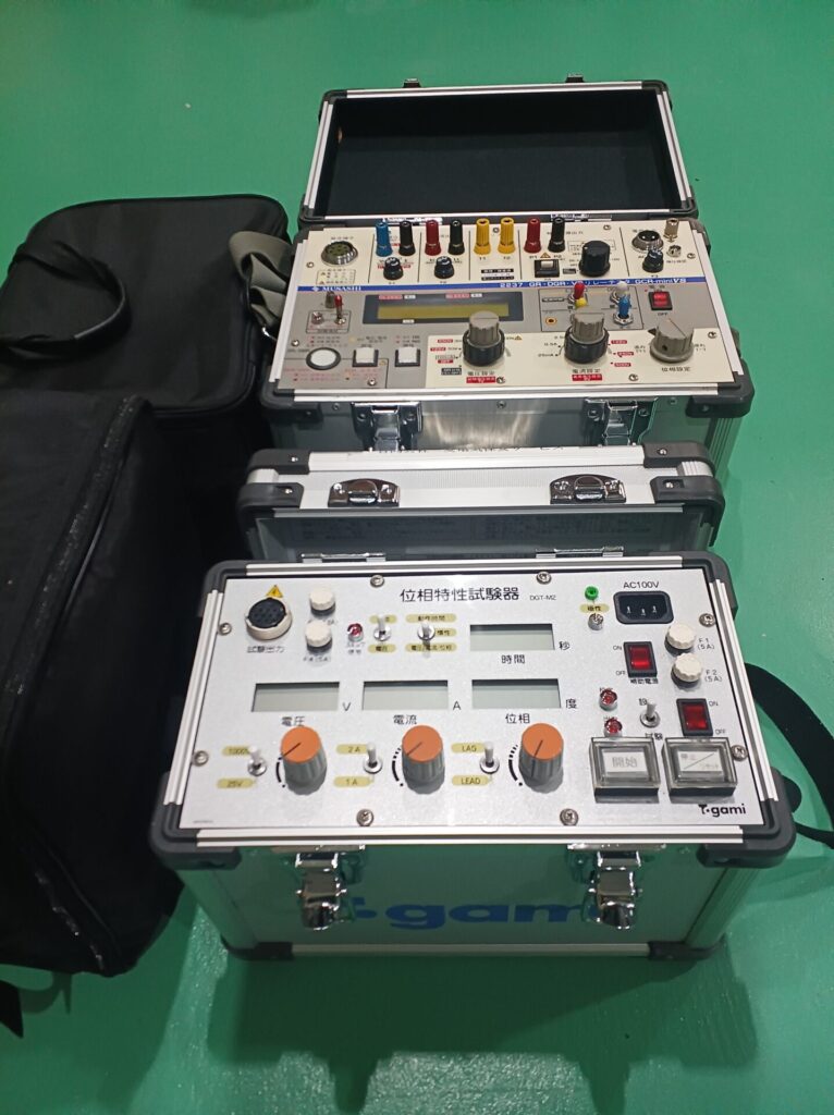 今回の購入にあたり散々調べてみて、設定/試験モードで設定操作での電流、電圧の出力は改善されていたのでこれなら使えると思い購入を決定しました。(仕様書では設定モードkt-lt間最大75mAとあるので出力0ではないようです。)あと、ボリュームスイッチの回転は多くても測定精度の優先のためと考えればそこは慣れればいいかと思いました。上側のムサシの多機能試験機器は位相特性試験から不足電圧、地絡過電圧、逆電力継電器の試験もできるので、これはこれで必要だけど、重いのが難点なので、位相特性試験とLGRくらいの事業所では軽量のDGT-M2がメインになりそうです。