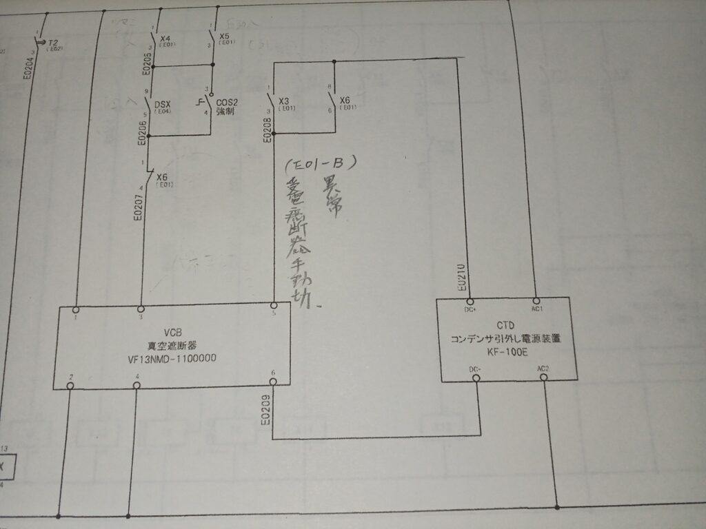 復電後に一息ついてそれぞれの原因を調べていきます。まずは図面の確認です。大規模改修が3年前にあった設備なので図面一式厚み1mほどのファイルの中から電気図面を探していきました。 まず一番肝心なDGRとPASの連動動作が不良の原因を調べていきます。単体試験の時から、電流試験で動作電流が毎回大きく変わっていたのがヒントになります。図面上の確認では問題ないので現物を調べます。PASから継電器本体までの長さ80mくらいあり高圧ケーブルと制御ケーブルが並走しています。接続部を確認しながら追っていくと継電器手前の端子台まではシールド線が配線されてるのに、継電器にシールド線の接続がありません。シールドの両端が浮いた状態です。これは誘導の影響を受けていることが可能性として大きくなりました。(^▽^)/一つ解決か?