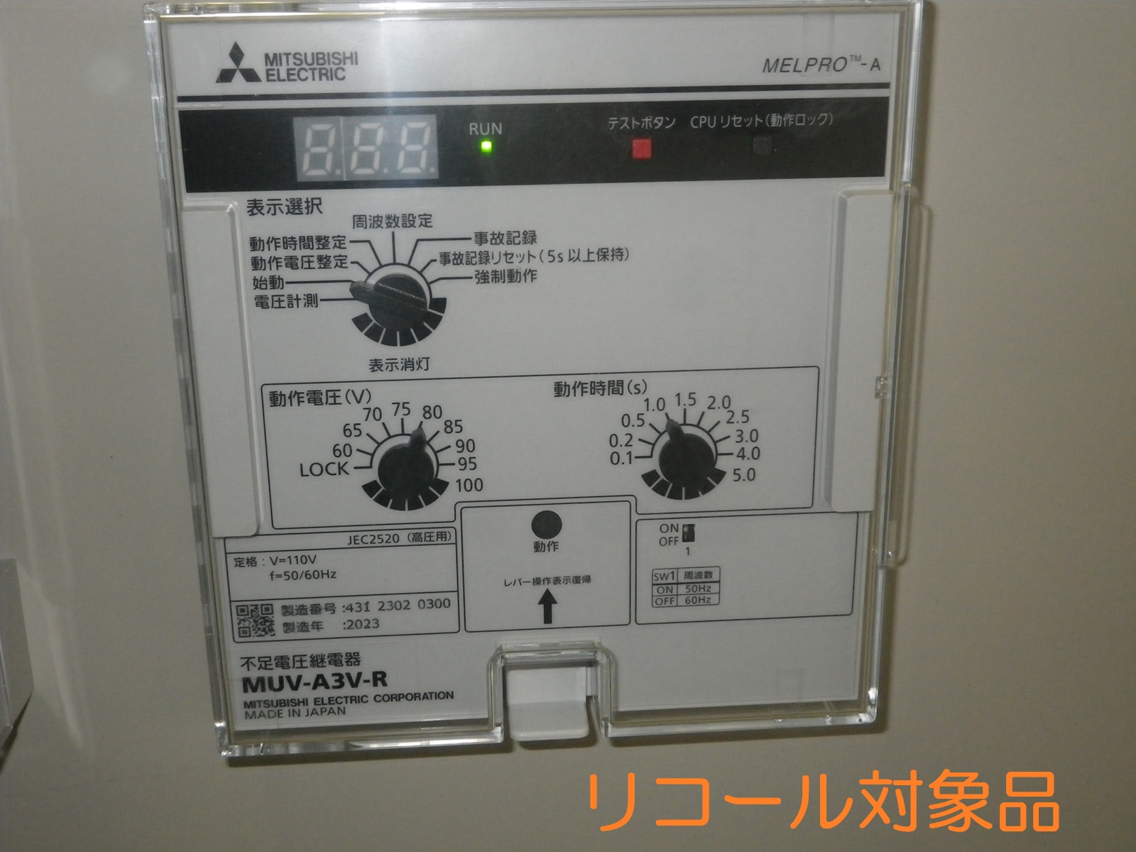 この事業所では、これ以外に不足電圧継電器MUV-A3Vリコールがヒット。低圧負荷のプルボックス内で接地線の結線忘れもあり。昨年まで管理していた大手〇〇協会さん、竣工試験と翌年の年次点検やってるはずなのに、なんでこんな不具合残ってるのか呆れます。点検業界はその担当する人の資質に大きく左右される業務です。当社においても社内レベルを一定水準以上に上げ、保っていくことを一つの目標にも掲げていますが、こういったことを経験すると更に気が引き締まります。